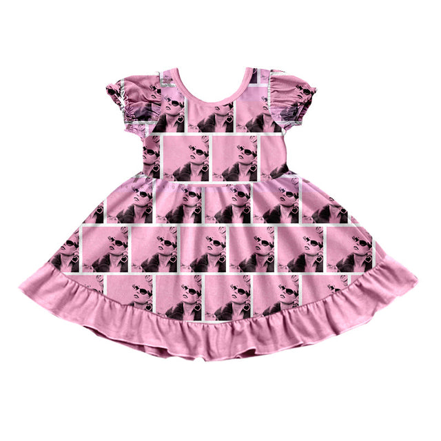MOQ 3 Short sleeves pink patchwork ruffle singer girls dress - 3-6M is backordered and will ship as soon as it is back in stock.