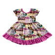 MOQ 3 Short sleeves purple patchwork ruffle singer girls dress