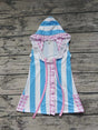 MOQ 3 sleeveless pockets blue stripe girls hooded swimming coverup