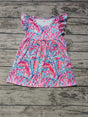 MOQ 3 watercolor flutter sleeves girls spring summer dress