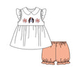 MOQ 3 white short sleeves dog top plaid shorts girls team set