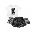 MOQ 3 White top black tassels leather shorts singer girls clothes