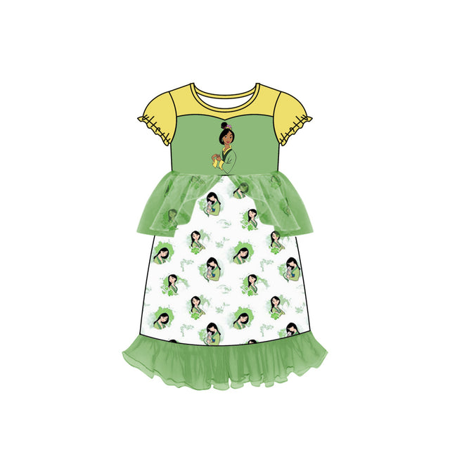 MOQ 5 green short sleeves princess girls tulle dress - 3-6M is backordered and will ship as soon as it is back in stock.