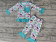 MOQ 5 long sleeves pocket smile monster girls pajamas