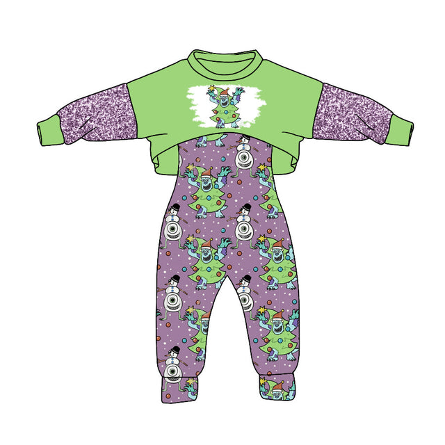 MOQ 5 monster Christmas tree jumpsuit top girls 2 pcs outfits