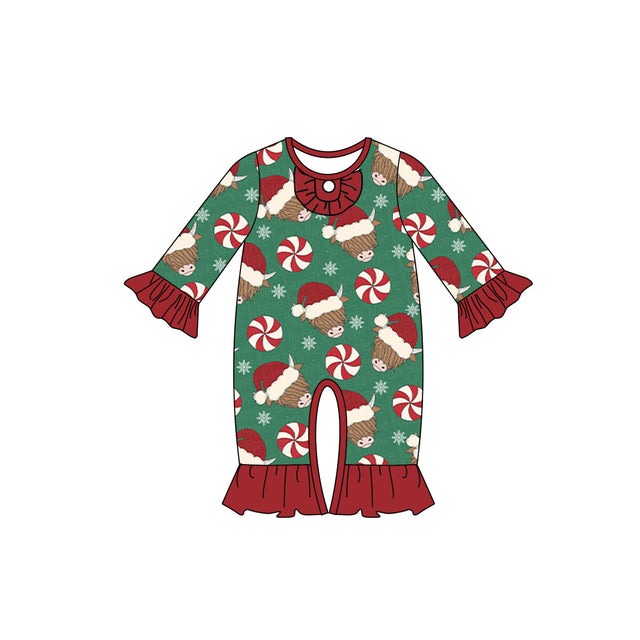 MOQ 5 PCS highland cow candy baby girls Christmas romper