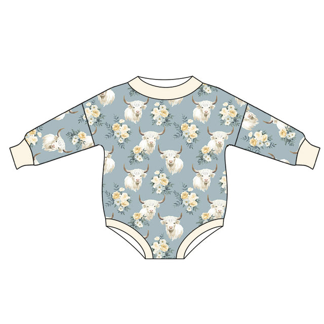 MOQ 5 PCS highland cow floral baby girls romper - 0-3M is backordered and will ship as soon as it is back in stock.