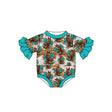 MOQ 5 PCS Horse turquoise short sleeves baby romper