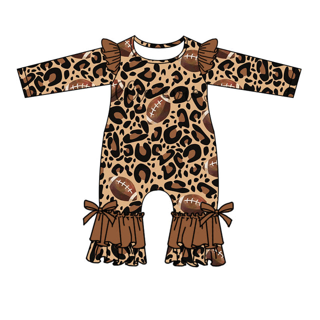 MOQ 5 PCS leopard football brown baby girls romper - 0-3M is backordered and will ship as soon as it is back in stock.