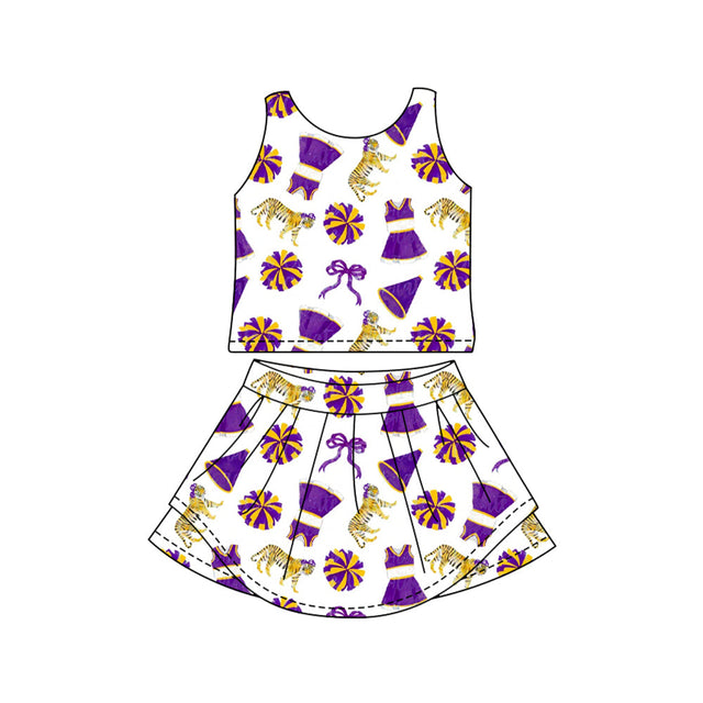 MOQ 5 pcs sleeveless tiger bow top skirts girls team active outfits