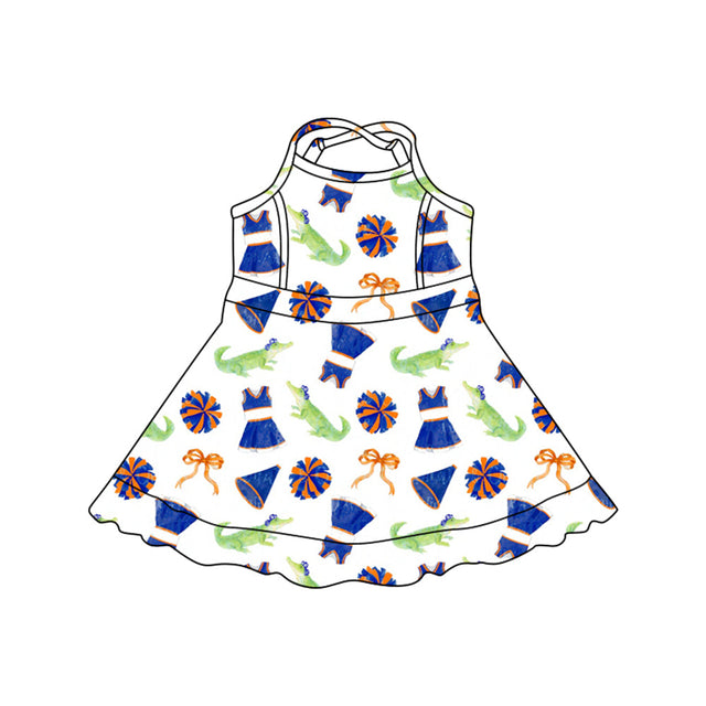 MOQ 5 pcs Straps crocodile bow kids girls team athletic dress