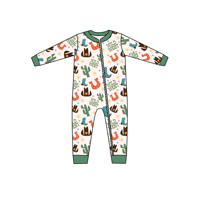 MOQ 5 PCS wild west boots cactus baby western zipper romper