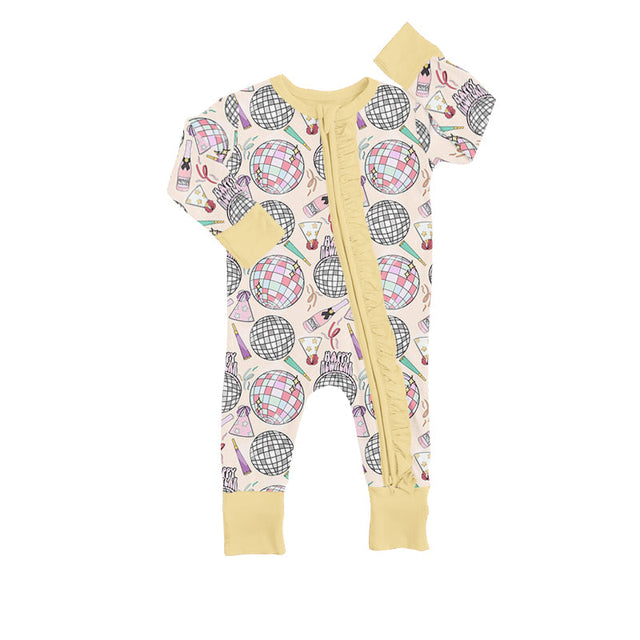 MOQ 5 PCS yellow ruffle Happy new year baby zipper romper