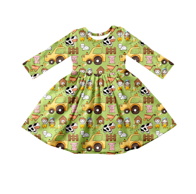 MOQ 5 pig sheep tractor baby girls farm twirl dress
