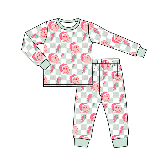 MOQ 5 plaid smile Christmas hat kids pajamas