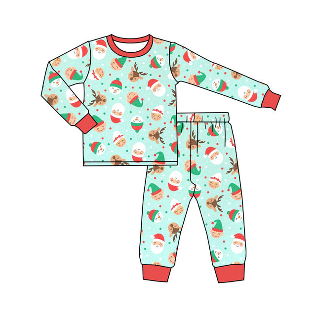 MOQ 5 santa deer long sleeves baby kids Christmas pajamas