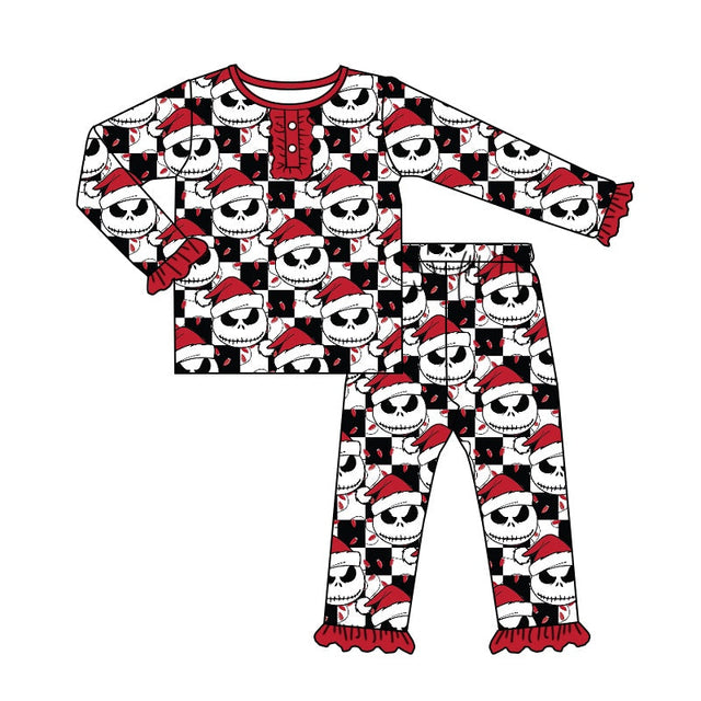MOQ 5 skull Christmas hat plaid kids girls pajamas