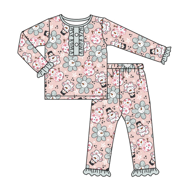 MOQ 5 snowman flower long sleeves baby girls pajamas - 3-6M is backordered and will ship as soon as it is back in stock.
