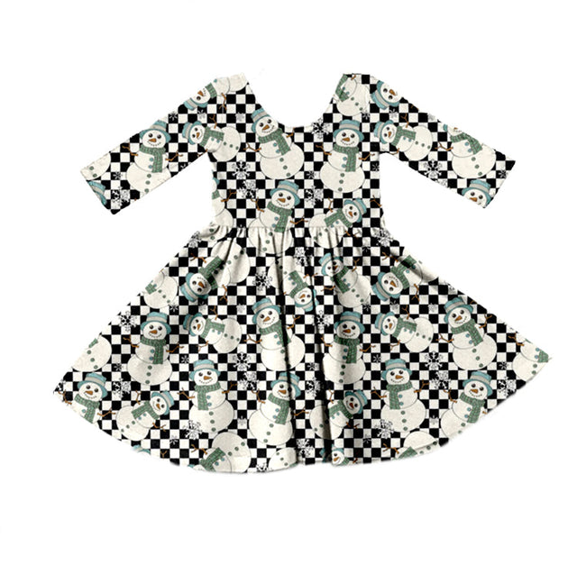 MOQ 5 snowman plaid long sleeves girls winter dress