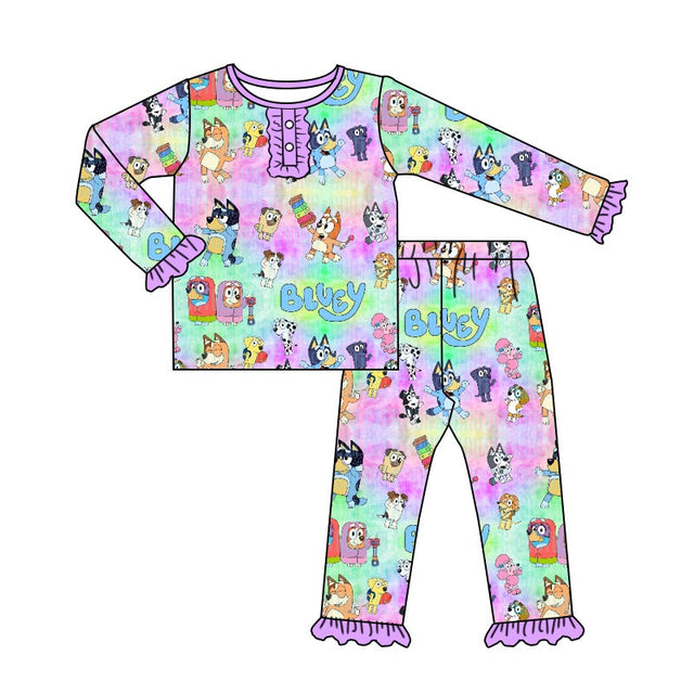 MOQ 5 tie dye dogs long sleeves baby girls pajamas