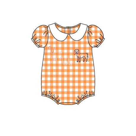 - MOQ 3 pcs short sleeves plaid dog T baby girl team romper $2000Unit price /Unavailable