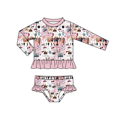 From $2400Unit price /UnavailableMOQ 3 long sleeves pink ruffle guitar butterfly singer girls swimsuit
