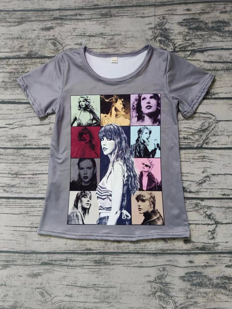 MOQ 3 Grey short sleeves patchwork singer girls shirt