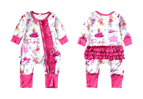 - MOQ 5 PCS pink princess ruffle baby girls zipper romper $2100Unit price /Unavailable
