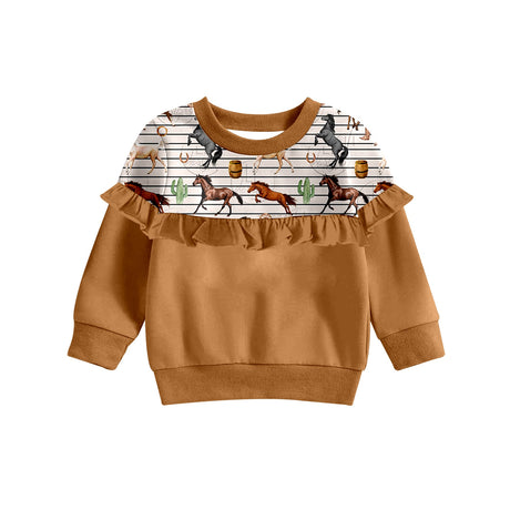 - MOQ 5 brown stripe horses ruffle girls shirt From $1800Unit price /Unavailable