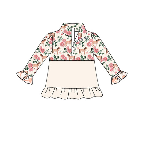 From $1900Unit price /UnavailableMOQ 5 cream floral horse baby girls zipper pullover