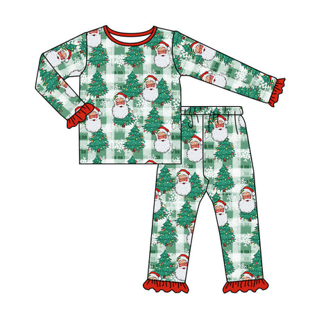 From $2400Unit price /UnavailableMOQ 5 green plaid santa Christmas tree kids girls clothing set