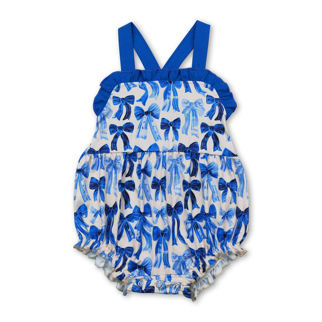 Blue ruffle straps bows baby girls summer romper