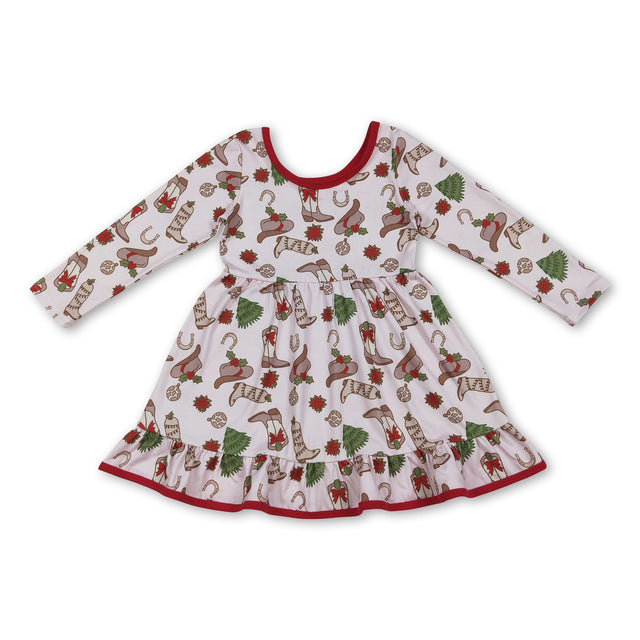 Christmas tree bow boots ruffle kids girls dresses - 3-6M is backordered and will ship as soon as it is back in stock.