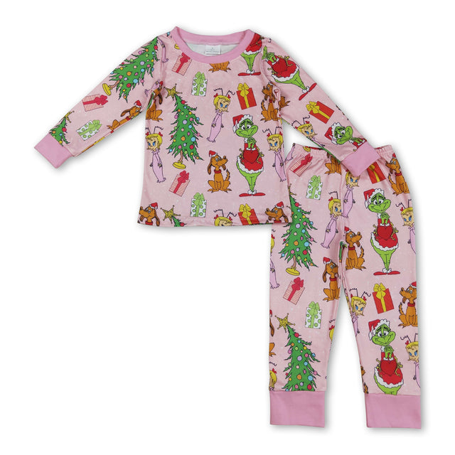 Christmas tree green face gift kids girls pajamas