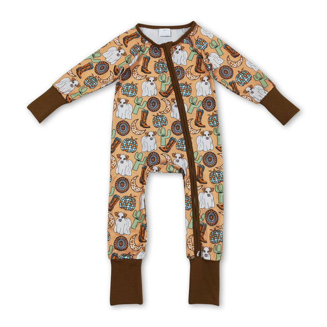 Cow cactus boots pumpkin western baby fall zipper romper - 0-3M is backordered and will ship as soon as it is back in stock.