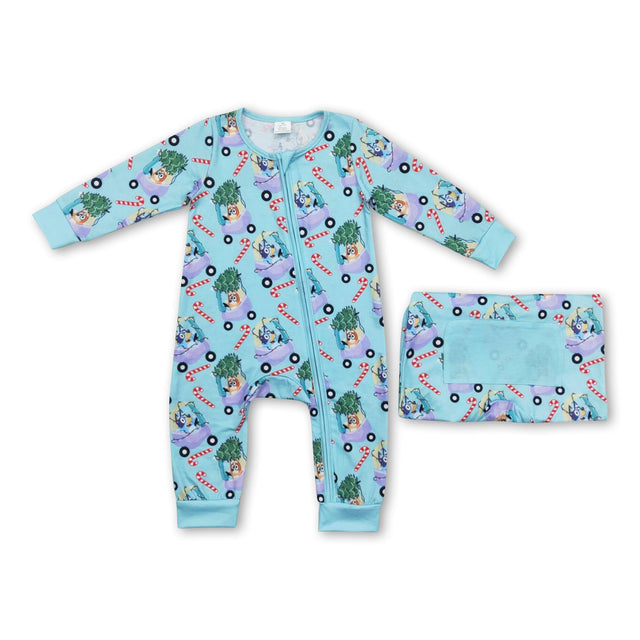 Dog Christmas tree candy cane baby kids zipper romper