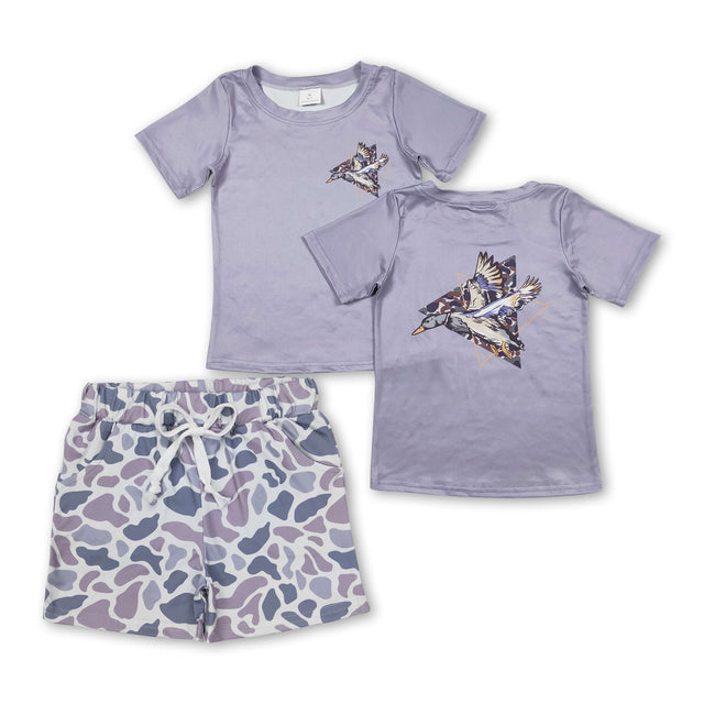 Duck short sleeves shirt grey camo shorts boys outfits - 3-6M is backordered and will ship as soon as it is back in stock.