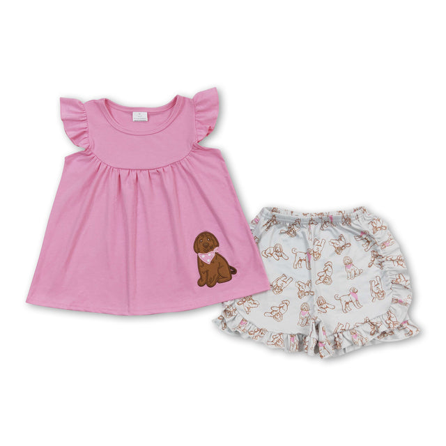 Flutter sleeves dog tunic ruffle shorts girls summer clothing