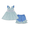 Flutter sleeves fishing plaid tunic shorts girls summer clothes