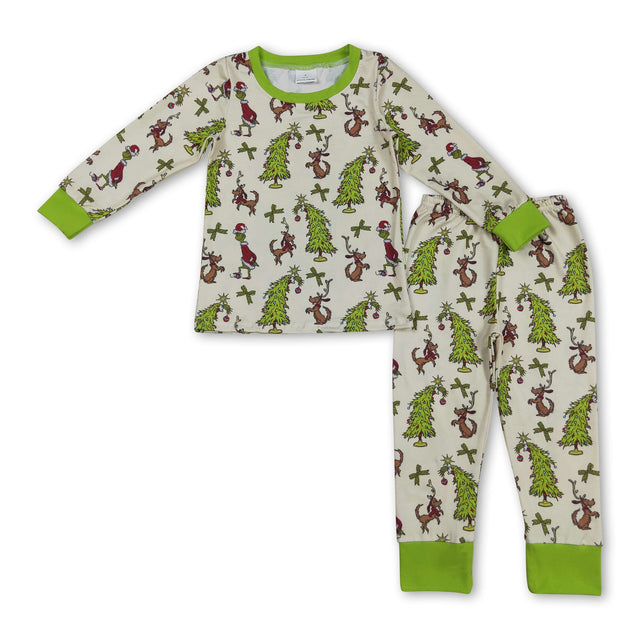 Green face bow Christmas tree baby kids pajamas