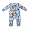Light blue dog pumpkin baby boy Halloween zipper romper
