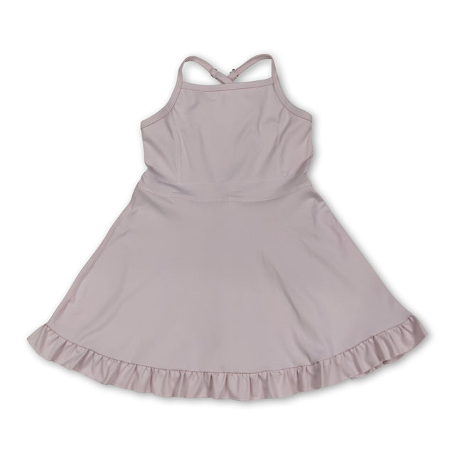 Light pink straps ruffle kids girls athletic dresses