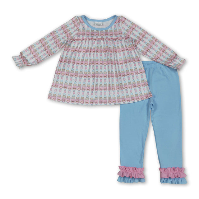 Long sleeves ballet tunic icing ruffle leggings girls Christmas clothes