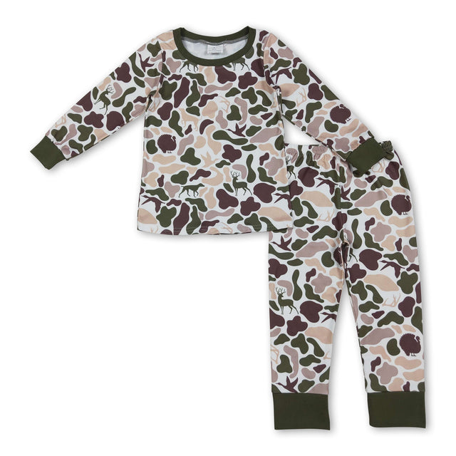 Long sleeves camo duck deer dog hunting boy pajamas - 3-6M is backordered and will ship as soon as it is back in stock.
