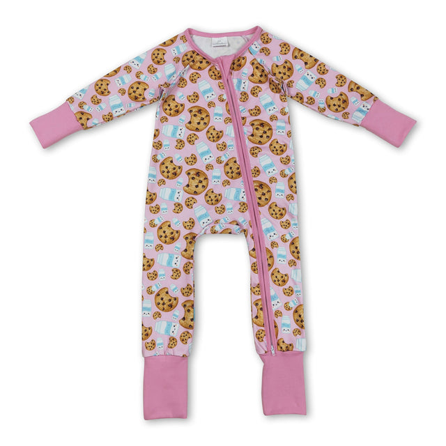 Long sleeves cookie milk pink baby girl Christmas zipper romper - 0-3M is backordered and will ship as soon as it is back in stock.