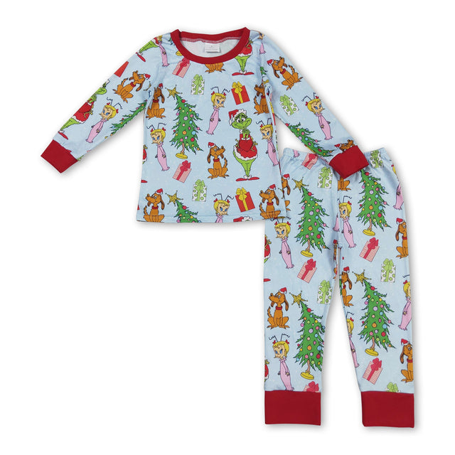 Long sleeves green face Christmas tree baby kids pajamas - 3-6M is backordered and will ship as soon as it is back in stock.