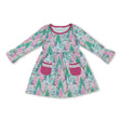 Long sleeves green pink Christmas tree girls dresses - 3-6M is backordered and will ship as soon as it is back in stock.