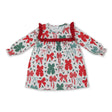 Long sleeves green red bow girls Christmas dresses - 3-6M is backordered and will ship as soon as it is back in stock.