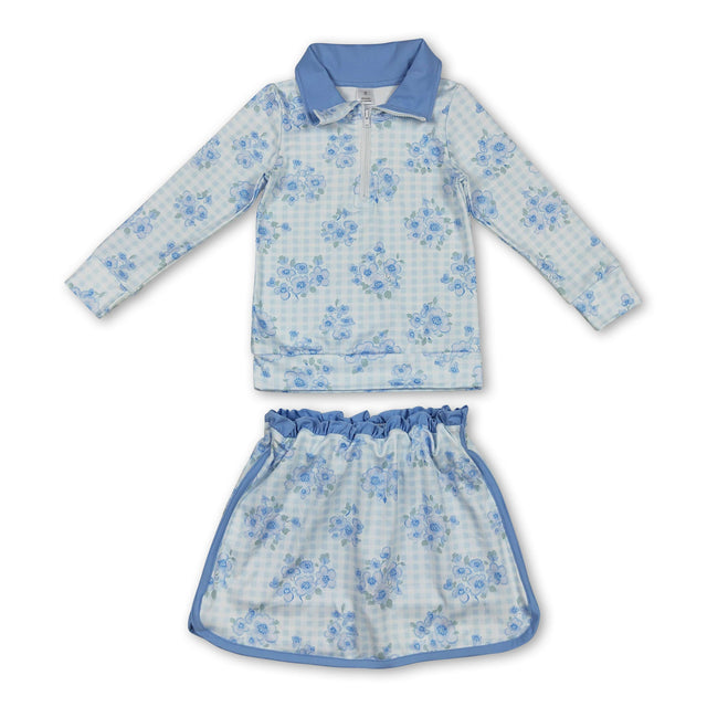 Long sleeves light blue floral pullover skirt girls clothes - 12-18M is backordered and will ship as soon as it is back in stock.
