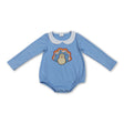 Long sleeves light blue turkey boy Thanksgiving romper - 0-3M is backordered and will ship as soon as it is back in stock.